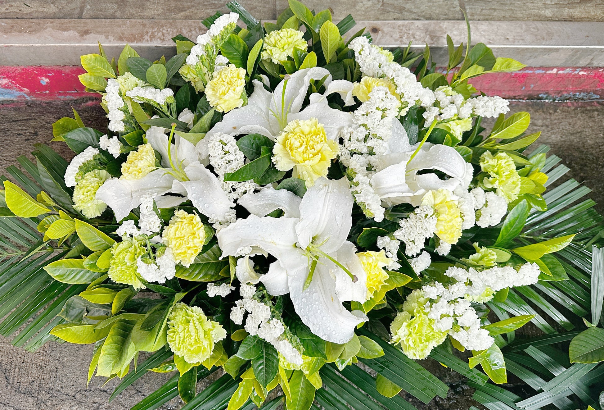 • 提供:棺面花球、棺上花、帛事花籃、帛事花牌、白事花圈
