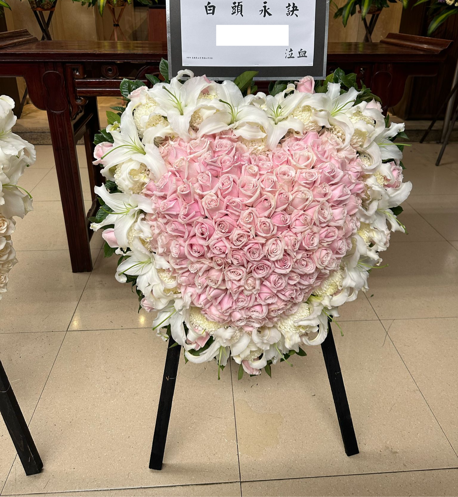 心形帛事花牌 是九龍白事花店的熱門款式之一,