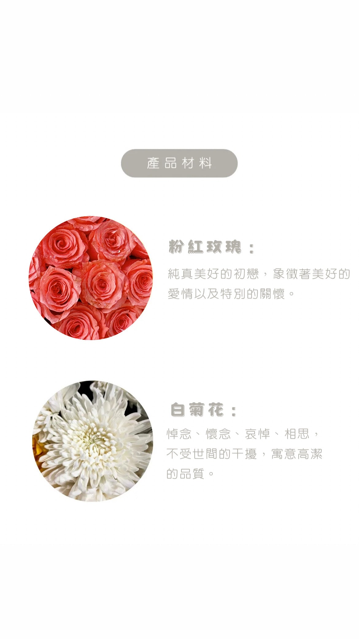• 主花材:白菊、白百合、乒乓菊、翠綠葉材